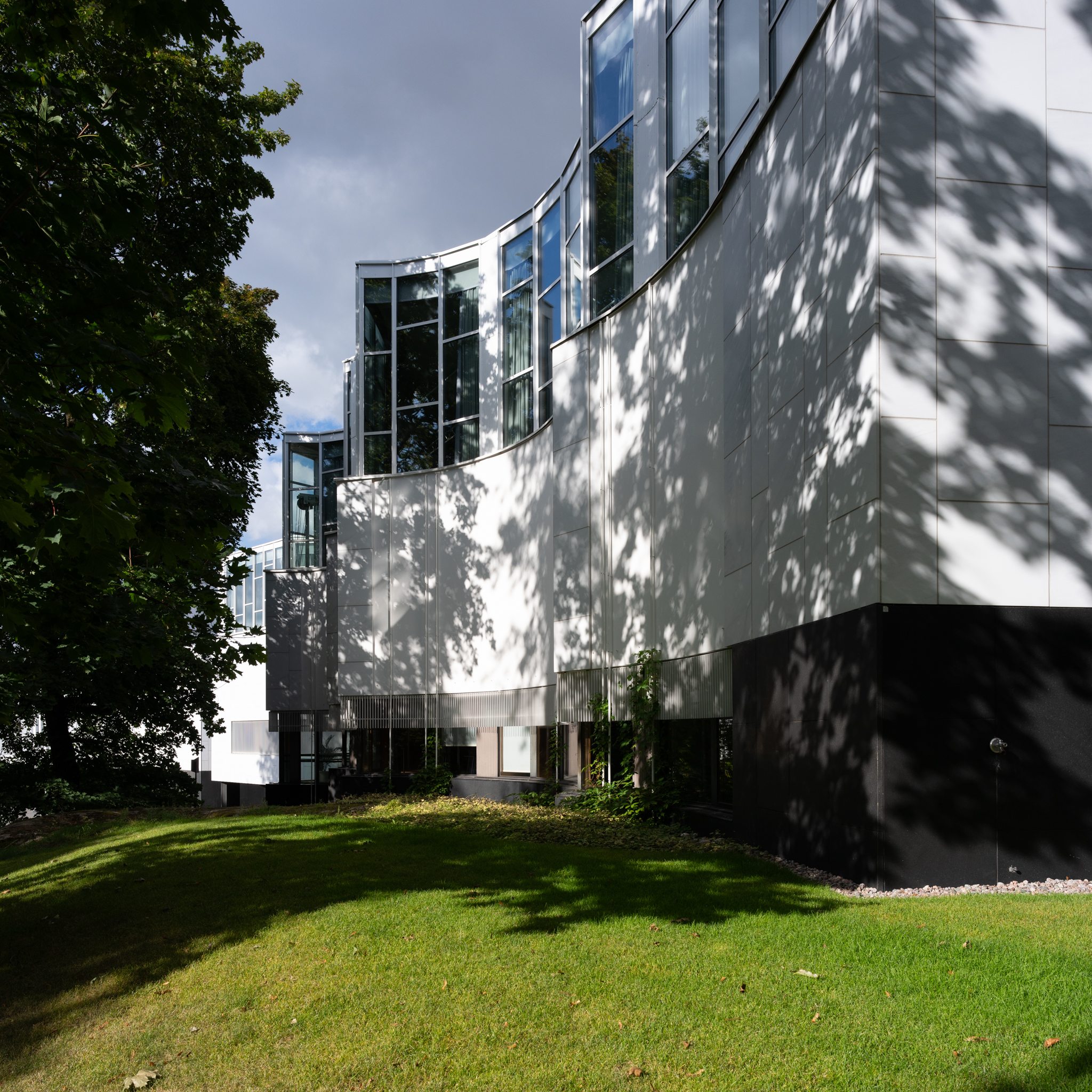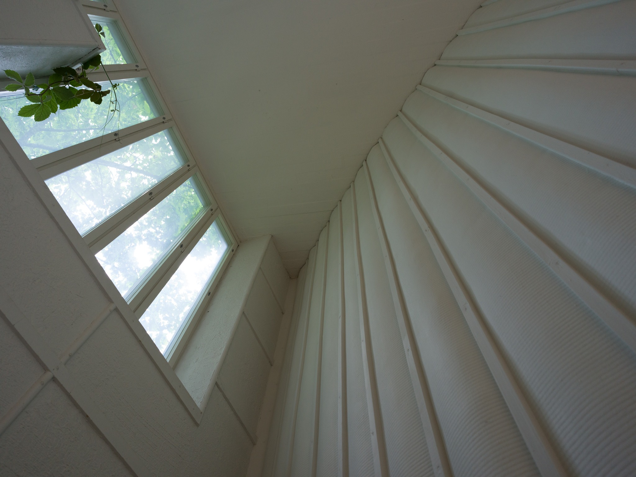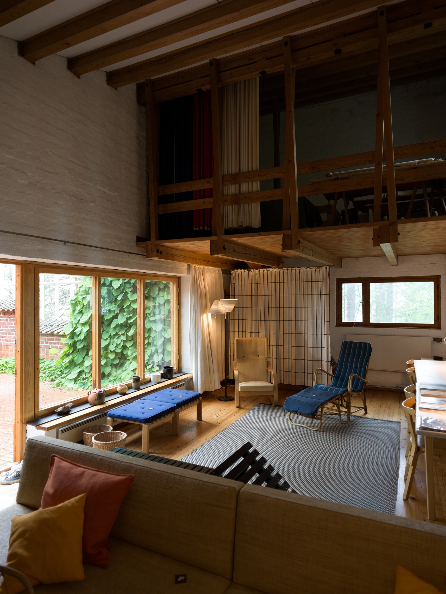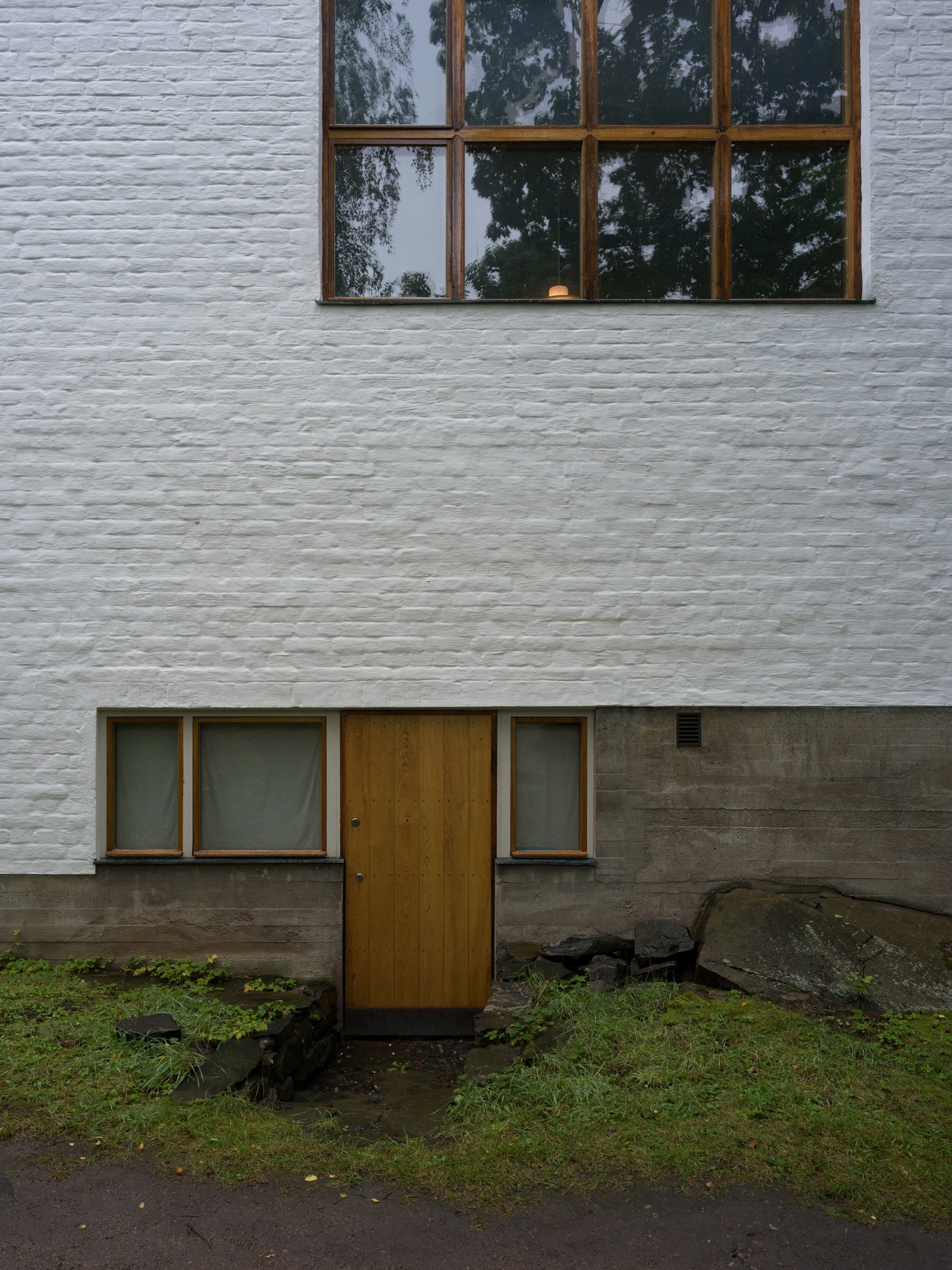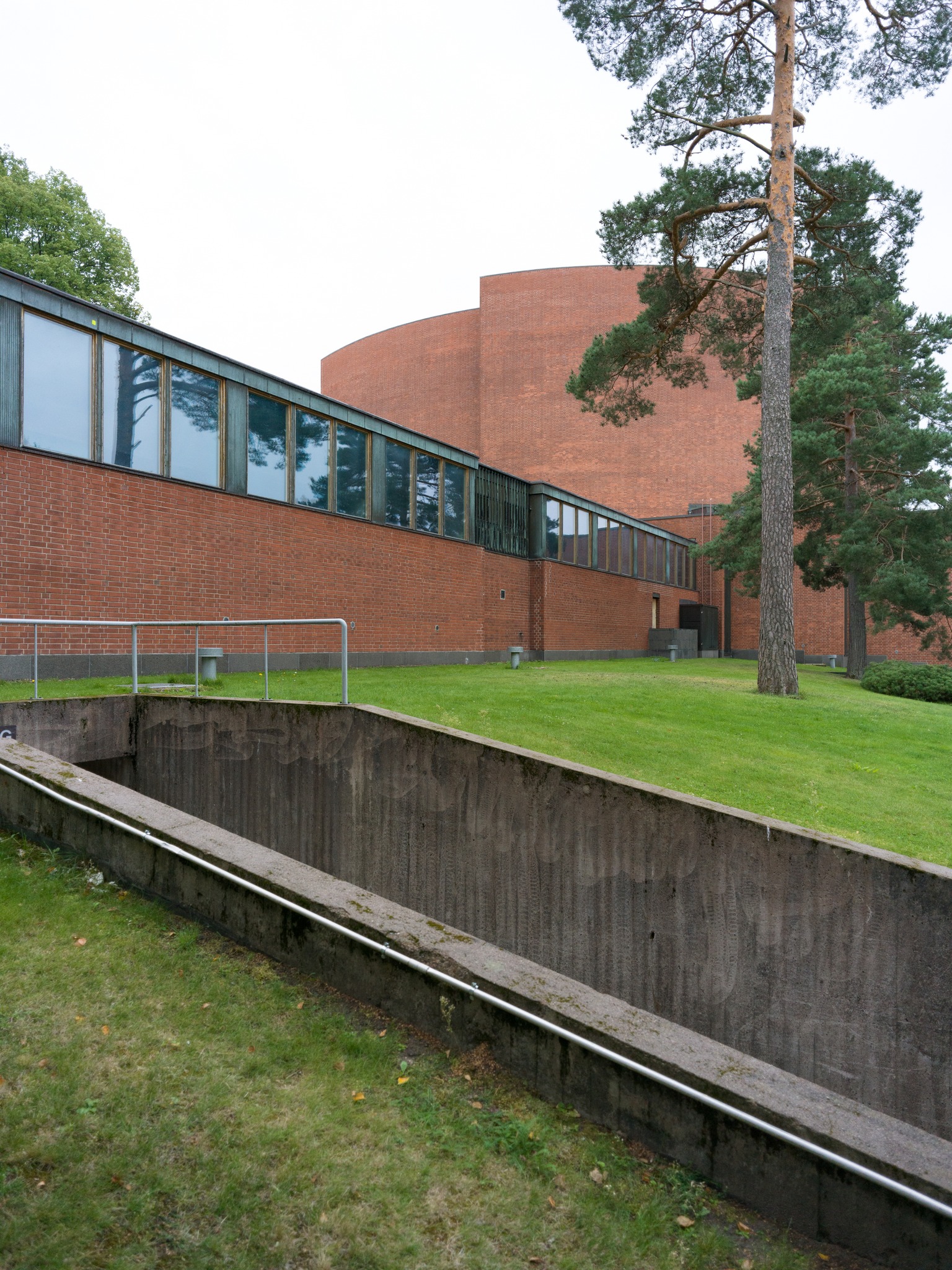 Alvar Aalto Experimental House。建築師1950-52年間,在距離赫爾辛基270km的小島上、蓋了一間充滿實驗性的度假小屋。從入口走五分鐘的林間小徑(建築師當年都是開船來、島上鳥無人煙也沒路)、就可看見隱沒在森林裡的白色小屋背面。中庭由磚造牆圍起一個正方形、中央有個火爐、這個向內的中庭往湖的方向開了一個破口、建築師故意製造一種破舊時間感、也讓植物順著牆蔓延內外。 各種紅磚的實驗砌法、還有其他案子用到的磁磚、都被他玩性大發的拼貼在牆上、也是這個屋子最迷人的地方。 他也蓋了一間桑拿房(至今他的孫子都常來使用)。建築師每天都會在湖邊游1km,他太太則開船跟著免得他溺水。他的船也是自己設計的、雖然不甚滿意但還堪用。 我們待著待著都忘了還要開三個多小時回程、人生如(Alvar Aalto)此、夫復何求。