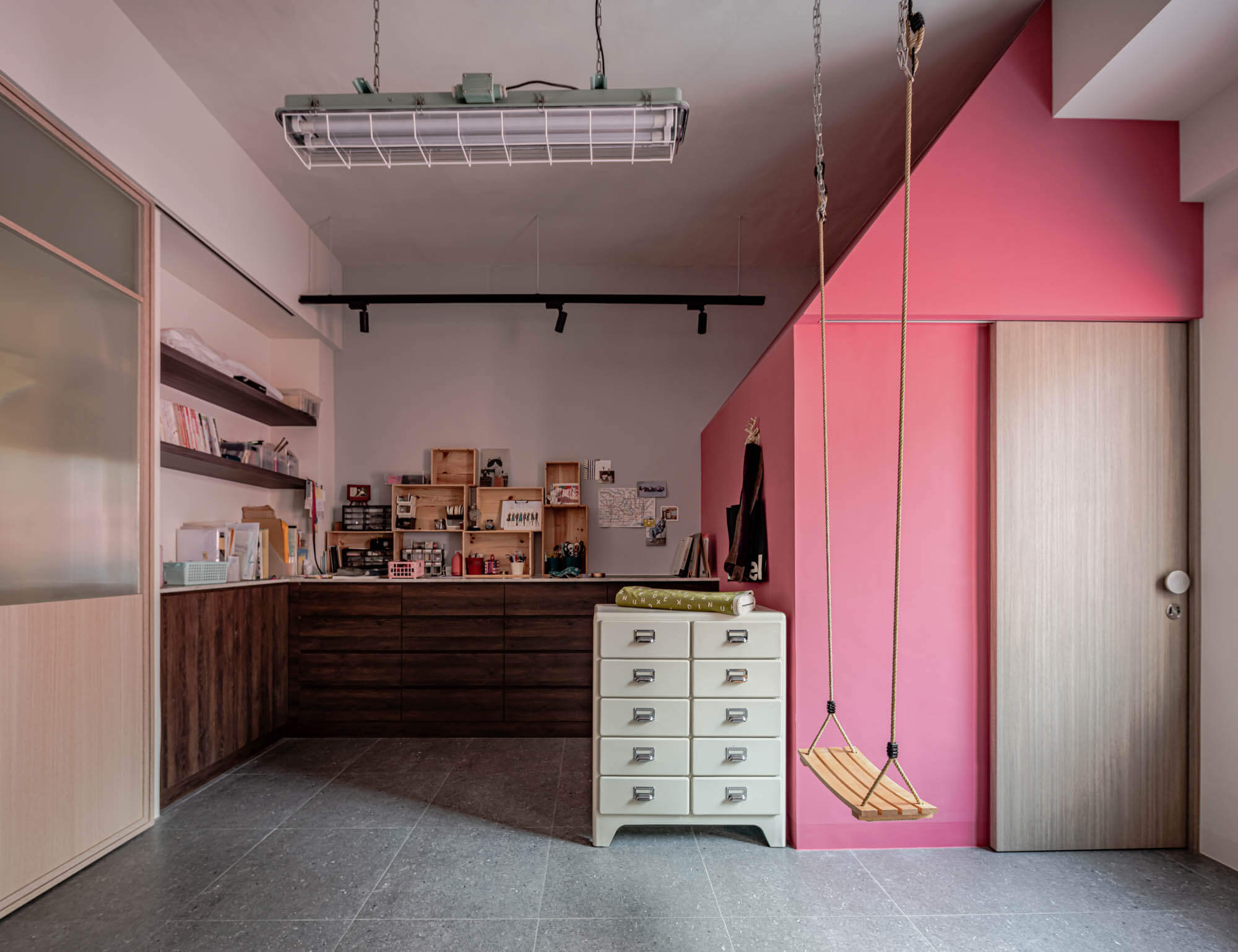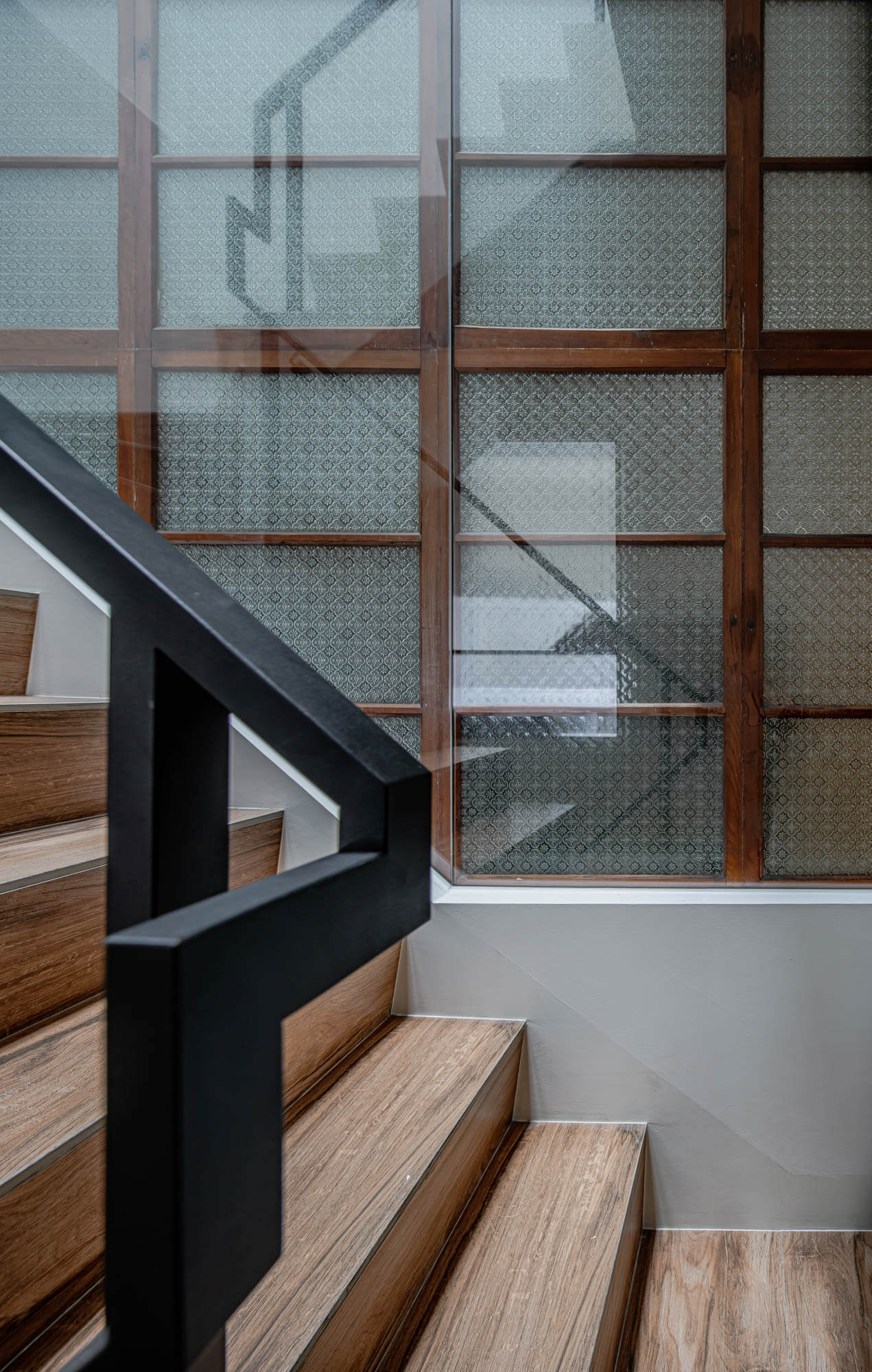 這個位於高雄的獨棟老宅改造案,是非關設計與不只設計合作的第三個空間,業主除了擁有空間與設計背景,他們所開設的布藝教室也為這個獨特的案子帶來很多不一樣的嘗試. 首先,空間組成為一樓雙車庫,雙儲藏室,獨立廁所.二樓布藝教室與休息室,雙浴廁.三樓大廚房餐廳,客廳與主臥,主浴室與客用廁所.四樓次主臥與客房,起居室與吧台,雙浴室.頂樓洗衣房與儲藏室.總共使用超過30種磁磚,20幾種顏色,整合業主搜集的老窗,古董傢俱等等.