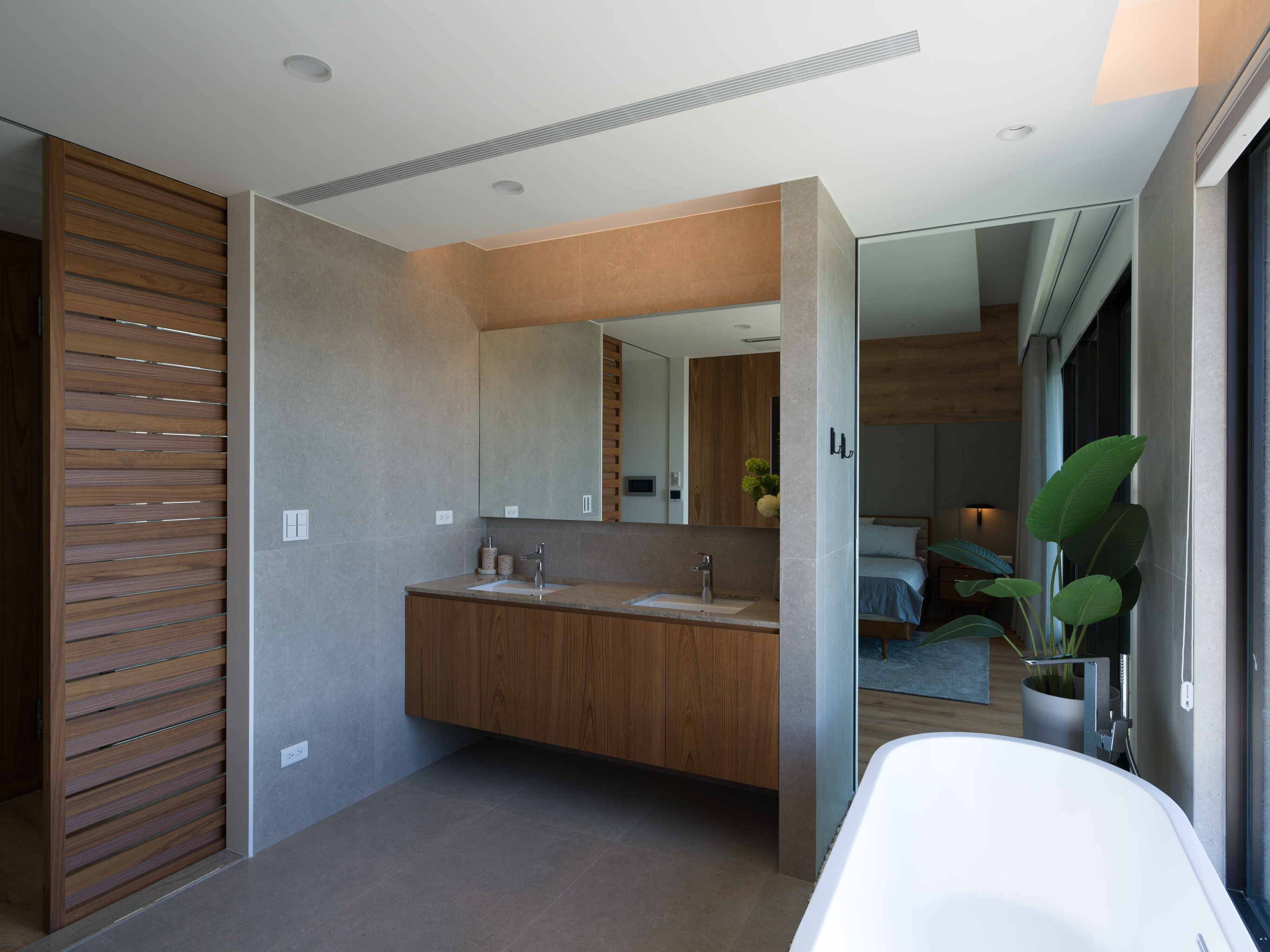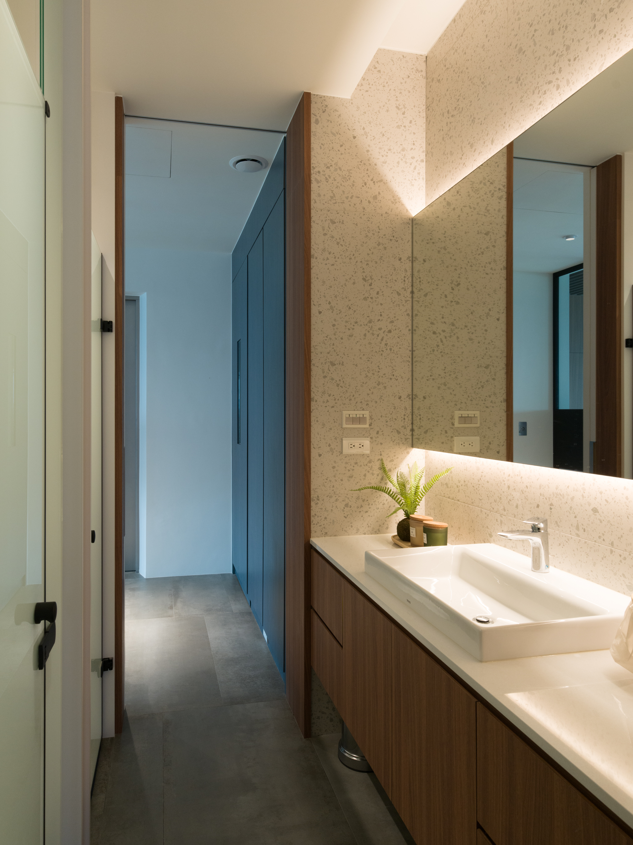由於從毛胚開始進行,所以工程階段也遭遇不少挑戰,尤其遇上幾個破壞力極強的颱風,不但好幾次吹壞現場保護措施,門窗也有程度不等的受損。也因為有這些經歷,我們更清楚知道山上的氣候變幻莫測,除了室內每個樓層都有安排獨立的全室除溼設備,也聽從園藝設計的專業建議,選擇根系穩健並耐風好照顧的植栽。 每個案子都有各自不同的環境條件、空間大小、機能變化、成本控制等等上百種變因,更別說還有使用者,每個人每分每秒都變化著。所以沒有一個案子是相同的。這也是很多人找到非關的原因。