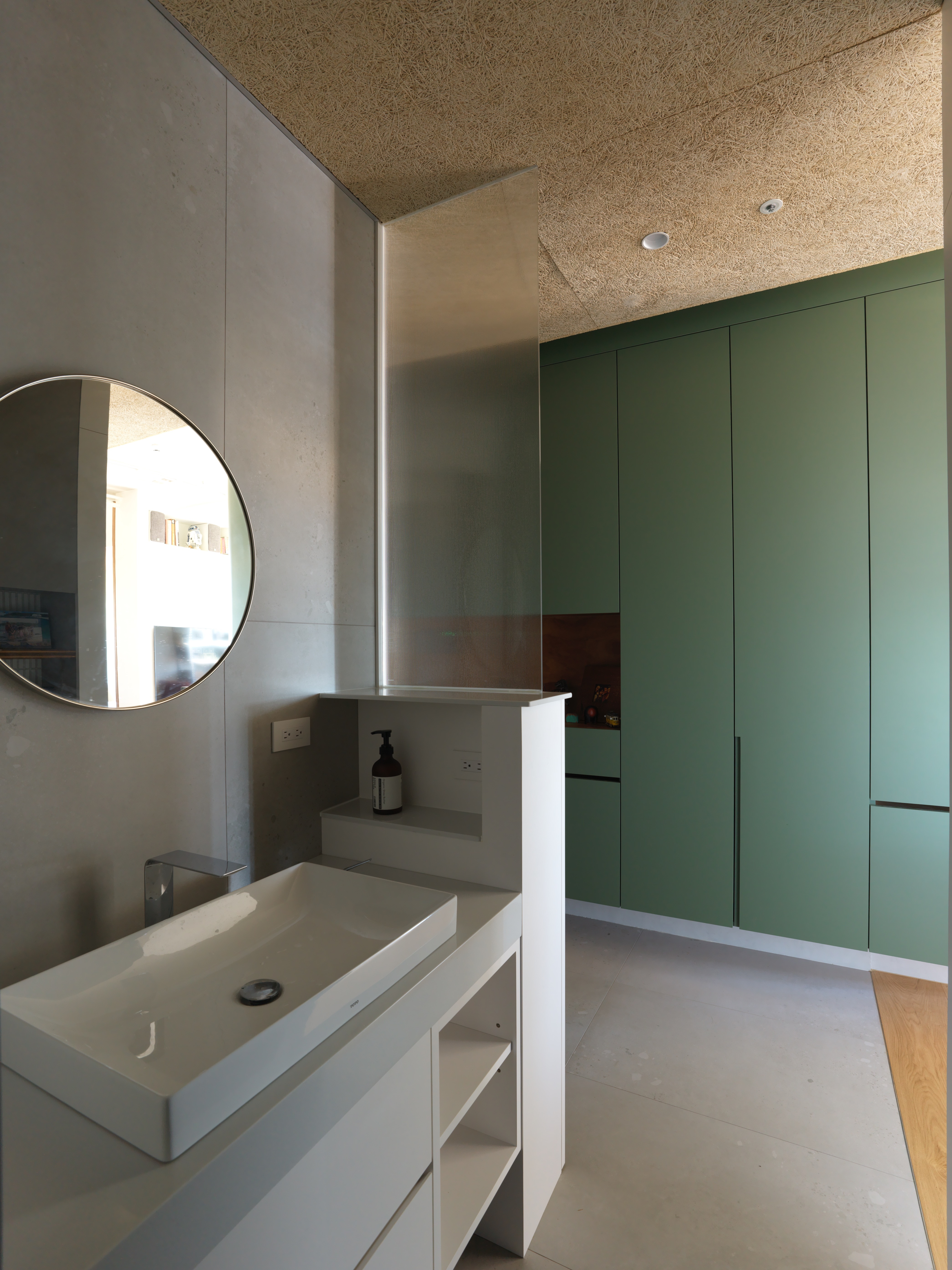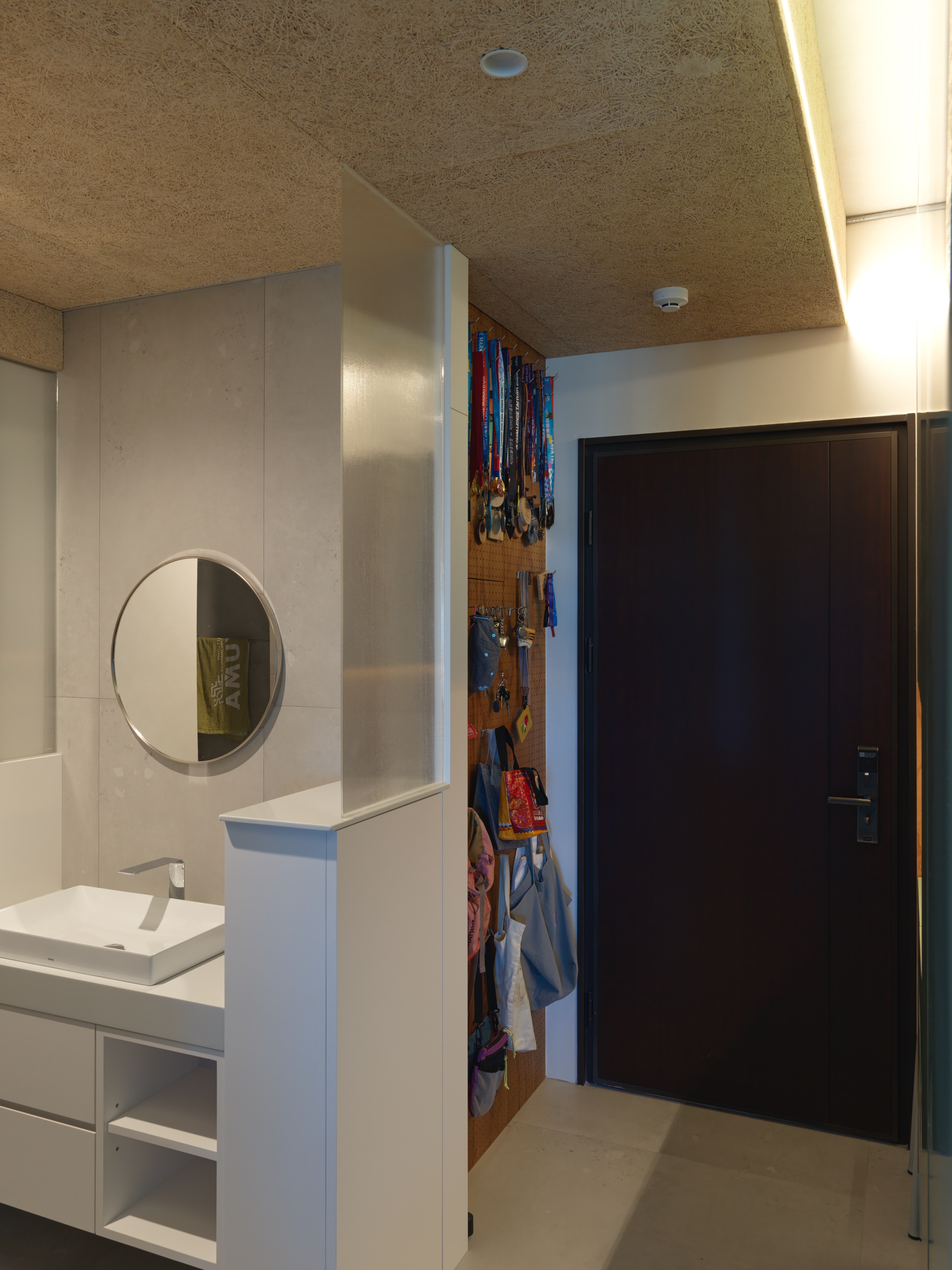 我們大量使用原始質感的材料,例如原色的海島型橡木地板、碳化松木夾板、木絲水泥板等等.特別的是三間臥室與琴房,我們用了瑞典的bolon地毯.這個材質也是我們這20年來持續應用的材料,健康、環保、安全. 空間吿一段落後,業主一家人很有效率地在幾天之內就完成搬家的動作.而且現場呈現的就是一幅「使用中」的生活狀態,感覺這個景象已經在他們各自的心中模擬過好幾遍. 對很多人來說這可能是個充滿個性的空間,但這只是業主一家再普通不過的日常.我想,這就是每個找非關設計的業主最大的原因.